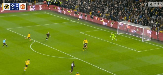 库尼亚本可以选择对着老东家完成射门,但他却尝试把球横拨给插上的布鲁诺·费尔南德斯,想要最大化曼联的进球机会。